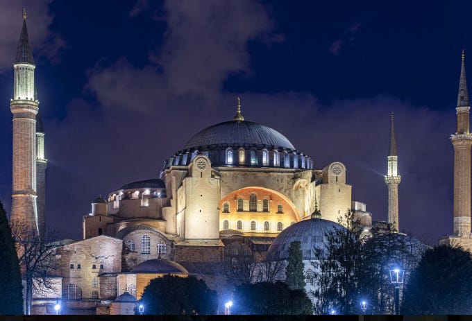 Echoing the ruling ideology of Istanbul at each moment in time, the Hagia Sophia was built as a church, became a mosque, became a museum, then a mosque again. The story of a city, reflected in one building.